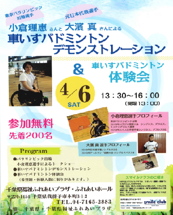 『車いすバドミントンデモンストレーション&体験会』のイベントを行います。
